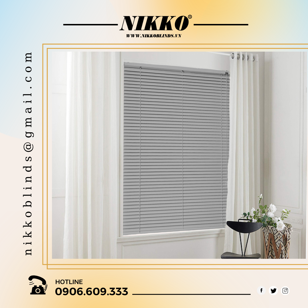 Nét đẹp tinh tế, chinh phục mọi ánh nhìn: Rèm sáo nhôm màu xám NIKKOBLINDS sở hữu thiết kế thanh lịch, hiện đại, dễ dàng hòa quyện vào mọi phong cách nội thất, mang đến sự sang trọng và tinh tế cho không gian sống của bạn.