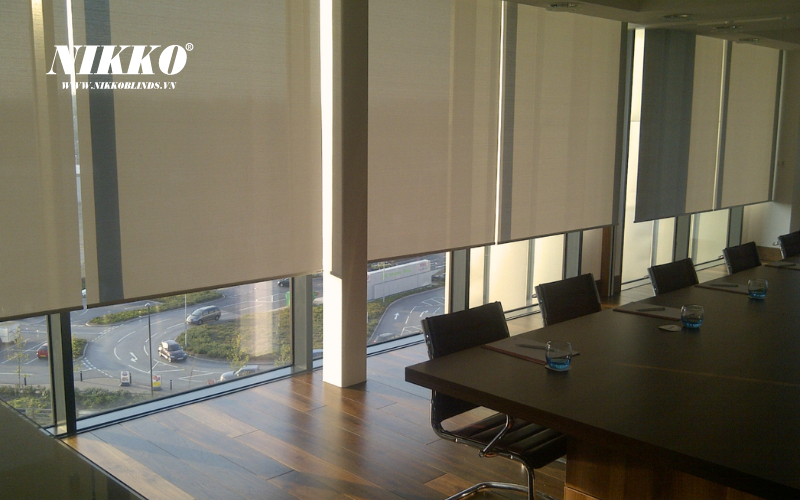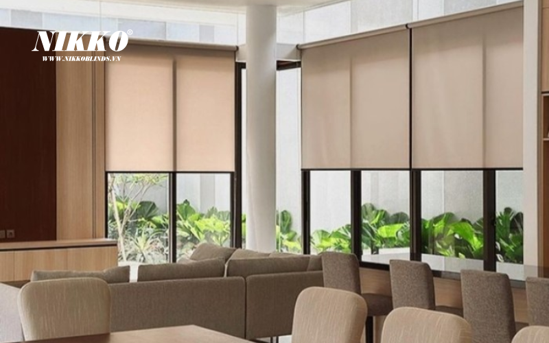 Rèm sáo cuộn màu be NIKKOBLINDS ứng dụng rộng rãi cho nhiều không gian như: Phòng khách, Phòng ngủ, Phòng bếp, Phòng học, Văn phòng, Làm vách ngăn,...để điều tiết ánh sáng, giúp cản sáng tuyệt đối.